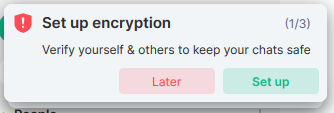 So that you can use true end-to-end-encryption across multiple devices, you must setup your encryption keys first. Start first by clicking the "set up" button on the "Setup encryption" notification: