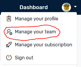 Managing your Guest Passes is easy, just start with opening up the Manage Team link under your Account Links at the top right: