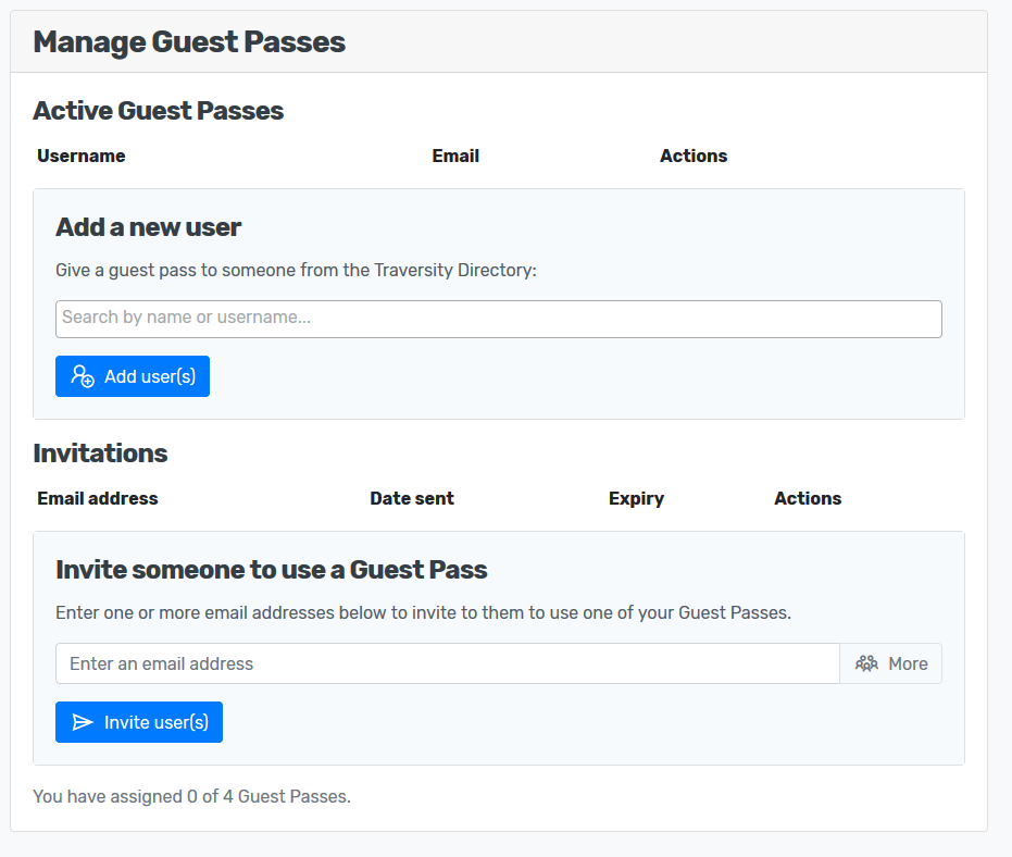 On the Manage Team page, you'll see a panel where you can manage your guest passes: