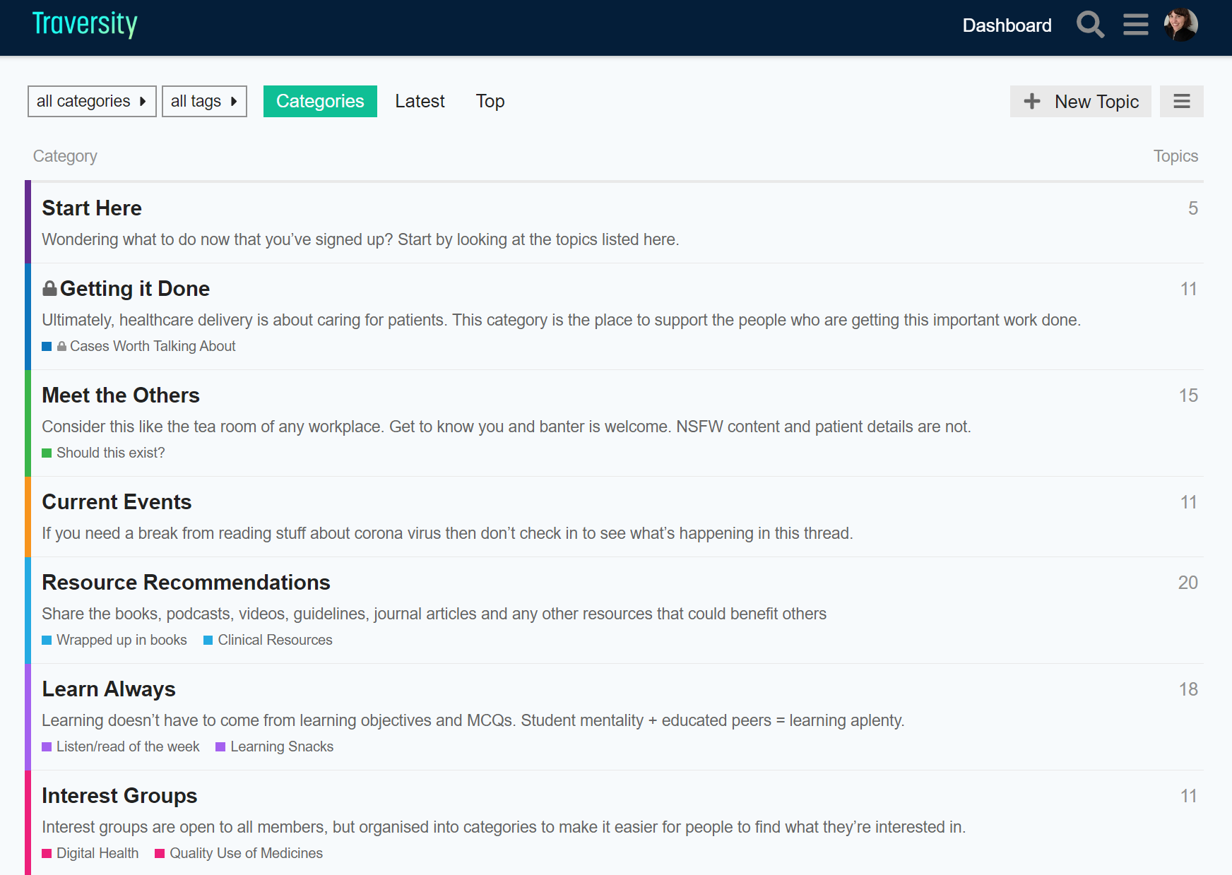 In Traversity, information is contributed through topics which are organised in discussion forums or categories. It's much less rapid-fire than social media, allowing discussions to play out over time. This allows you to stop and think about something before you respond. It also means you can engage in a broader range of topics. You might find a topic you're interested in months after it was originally posted and re-initiate the discussion by offering a reply. Fear of missing out doesn't exist here.
