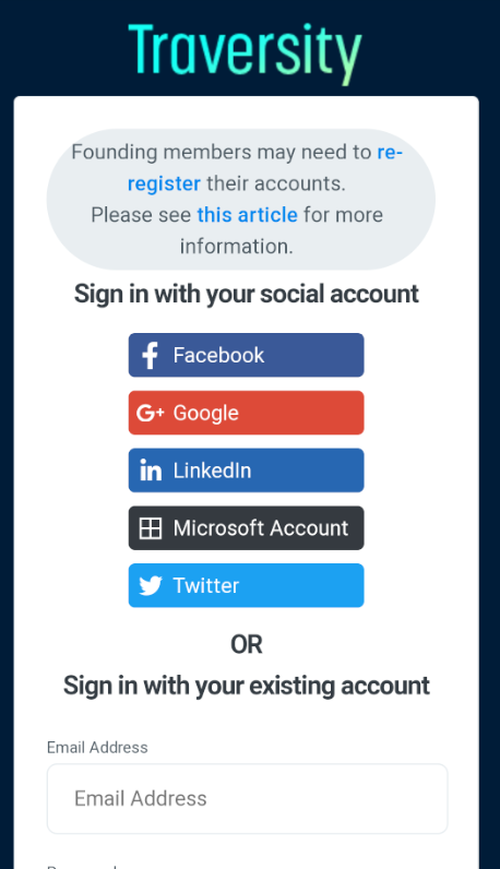 You will need to authorise the mobile app to use your Traversity Account. This step helps prevent people from hijacking your account: